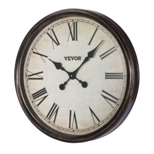 20-Inch Roman Numeral Wall Clock – Silent Battery-Operated Round Decorative Clock, Brown